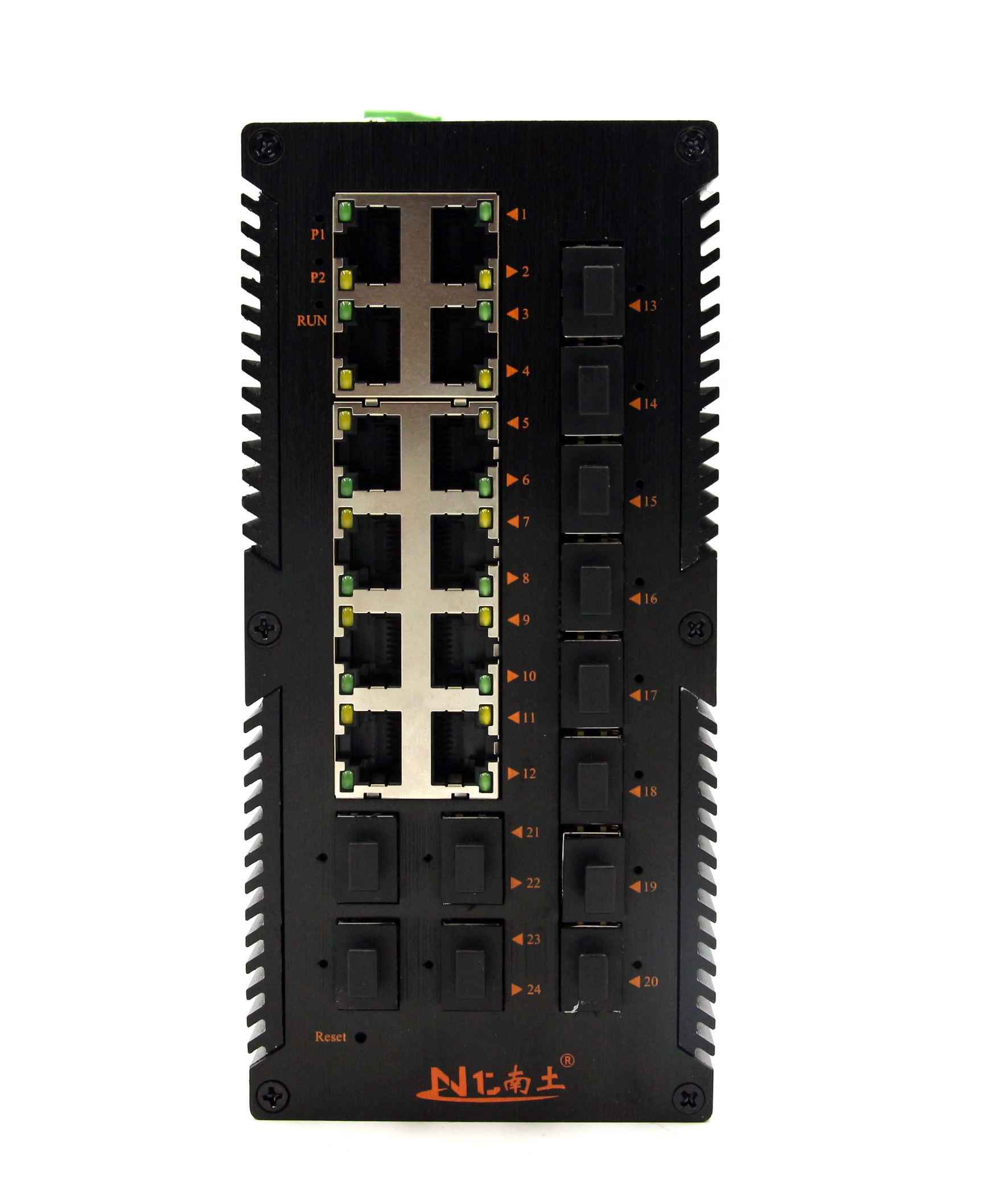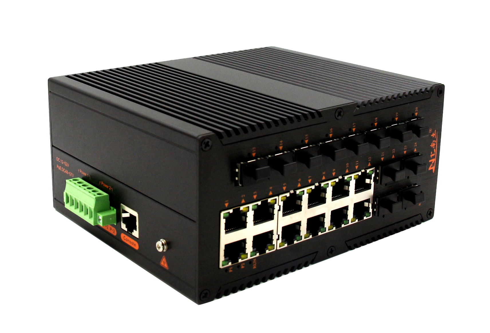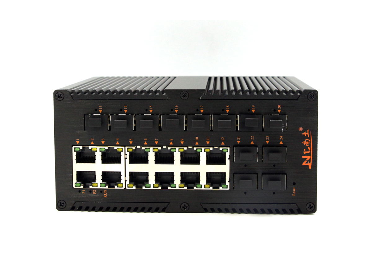 工業級(NT品牌)千兆網管12個SFP光口12個電口,導軌式-DC12~52V供電-寬溫(-40℃-85℃)-L3-支持環網(STP/RSTP/MSTP/ERPS)-WEB/CLI管理-SNMP-VLAN |