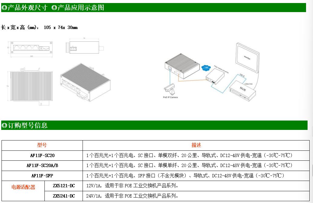 1路百兆電口+1路百兆SC光口工業級以太網交換機,支持1個10Base-T/100Base-TX電口和1個100Base-X光口。產品符合FCC、CE、ROHS標準。AF11F系列交換機具有-30℃~75℃的工作溫度,具有超強的堅固度能適應各種嚴苛環境,也可以非常方便的安置在空間緊湊的控制箱中。導軌的安裝特性、寬溫操作及擁有IP40防護等級的外殼及LED指示燈,使AF11F成為一個即插即用的工業級設備,為用戶的以太網設備聯網提供可靠、便捷的解決方案。