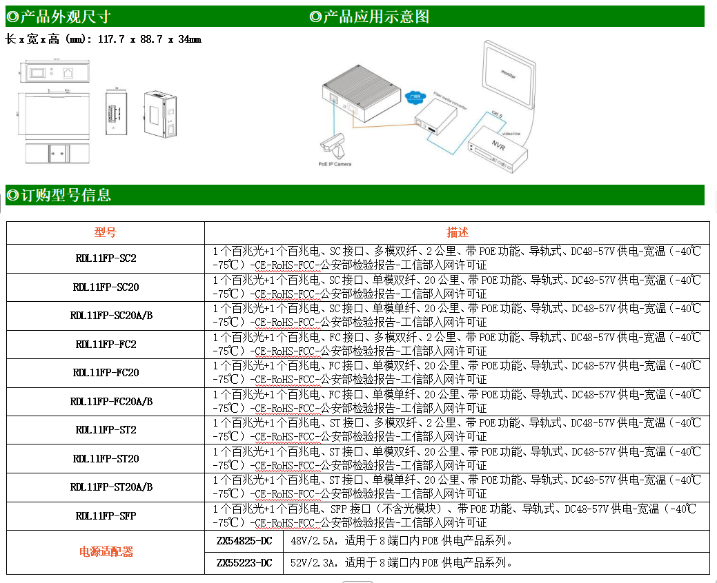 ●使用SC/FC/ST/SFP光纖接口