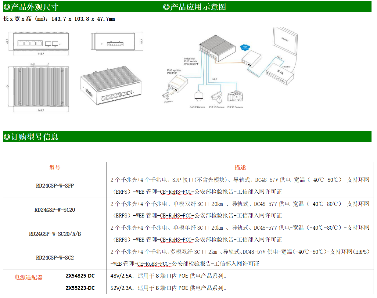 RD24GSP-W系列WEB管理工業級以太網PoE交換機,產品符合FCC、CE、ROHS標準,支持工業現場所需的以太網二層協議,保證通信網絡的穩定性。該系列交換機采用低功耗、無風扇設計,確保無噪聲干擾,同時支持-40~80℃工作溫度和良好的EMC電磁兼容性能,保證在惡劣的工業環境中保持穩定的工作,為工廠自動化,智能交通,視頻監控等工業應用領域組建快速穩定的網絡終端接入網絡提供安全可靠的解決方案。