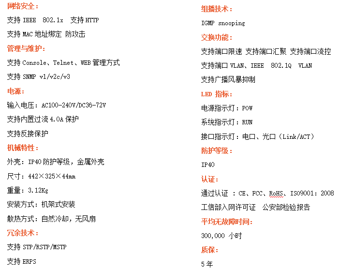 ●支持STP/RSTP/MSTP/ERPS,SNMPv1/v2c/v3,確保網絡安全
