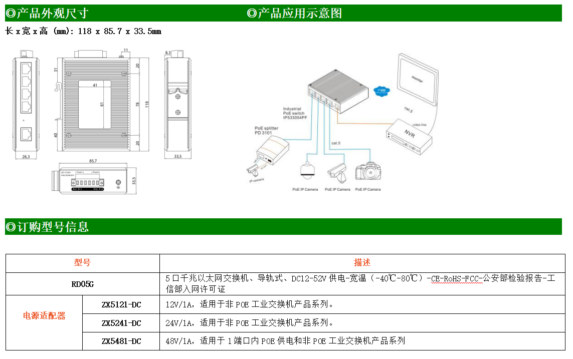 1路千兆上聯(lián)電口+4路千兆下聯(lián)電口工業(yè)級(jí)以太網(wǎng)交換機(jī),支持1個(gè)10/100/1000Base-TX上聯(lián)電口和4個(gè)10/100/1000Base-TX下聯(lián)電口。產(chǎn)品符合FCC、CE、ROHS標(biāo)準(zhǔn)。RD05G交換機(jī)具有-40℃~80℃的工作溫度,具有超強(qiáng)的堅(jiān)固度能適應(yīng)各種嚴(yán)苛環(huán)境,也可以非常方便的安置在空間緊湊的控制箱中。導(dǎo)軌的安裝特性、寬溫操作及擁有IP40防護(hù)等級(jí)的外殼及LED指示燈,使RD05G成為一個(gè)即插即用的工業(yè)級(jí)設(shè)備,為用戶的以太網(wǎng)設(shè)備聯(lián)網(wǎng)提供可靠、便捷的解決方案。