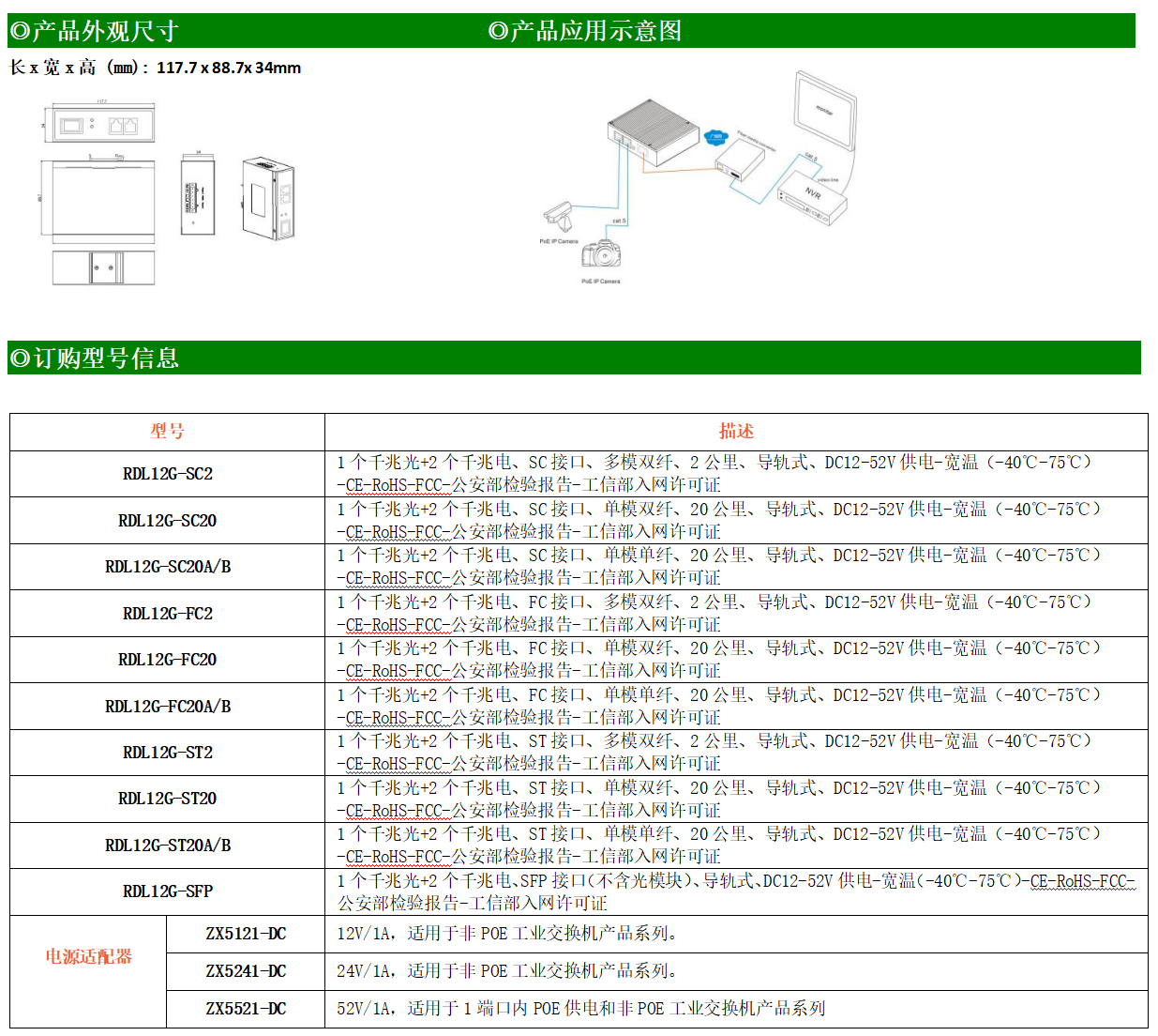 ●使用SC/FC/ST/SFP光纖接口