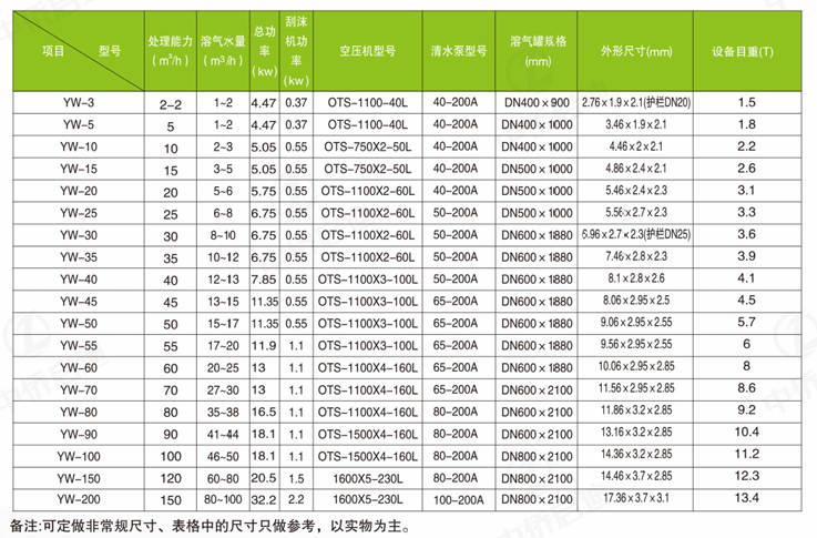 氣浮機型號參數